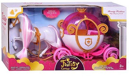 Сказочная карета – замечательный игровой набор, который перенесет ваших детей в мир волшебства и сказок! Основной элемент комплекта – великолепная карета с конём, которая выполнена в красивых тонах. Конь оснащен звуковыми эффектами. При включении игрушка начинает двигаться вперед, сопровождая это реалистичными звуками стука копыт и ржанием. За включение-отключение отвечает кнопка под хвостом. Карета съемная: она легко крепится к коню и катится следом за ним, когда тот движется, создавая эффект настоящей поездки. У кареты открываются дверцы, а также имеются функциональные колеса, что позволяет ее катать по поверхности. Конь и карета выполнены из качественного пластика, а ремни на лошади сделаны из гибкой резины.
