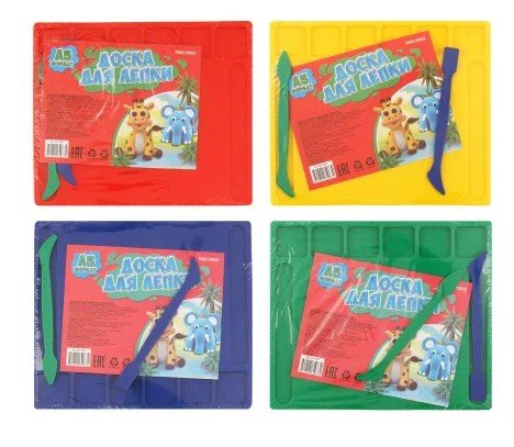 ДОСКА ДЛЯ ЛЕПКИ С ВЫЕМКАМИ А5 + 2 стека , ассорти (ДЛ-4987) материал - пластик
