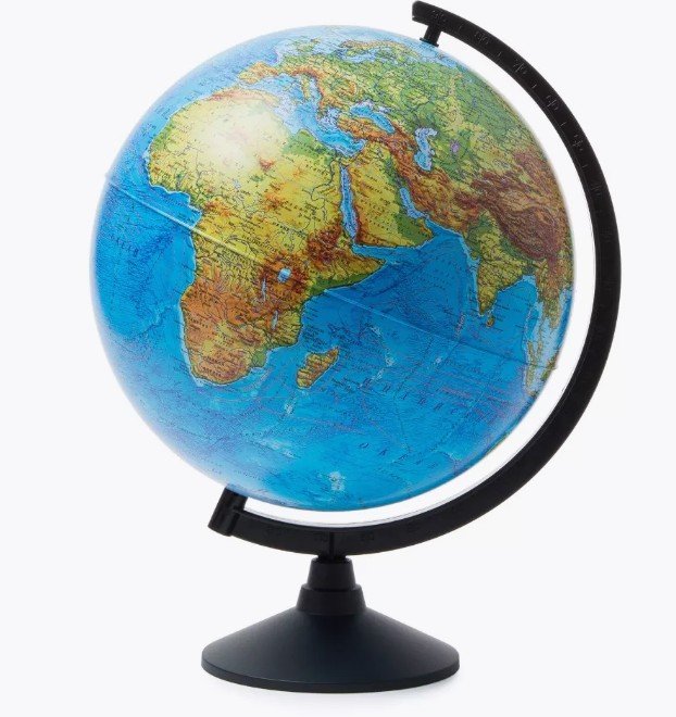 Классический физический глобус для обучения детей географии. Сфера изготовлена из пластика. Диаметр сферы 32 см. Устойчивая настольная подставка из черного пластика. Карта максимально подробная для данного диаметра глобуса. Линия экватора выпуклая для тактильно восприятия. Карта физическая. Изоборажение карты соответсвует принятым мировым картографическим стандартам условного обозначения ландшафта и стран. Подарочная упаковка - фирменная картонная коробка.