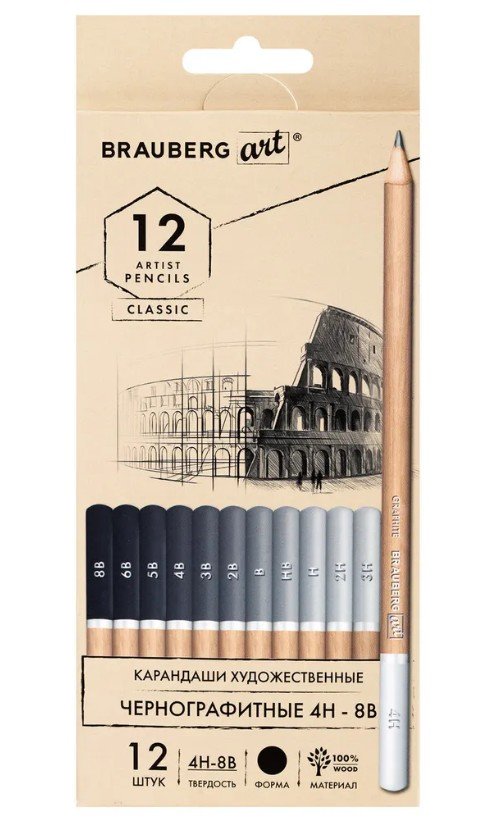 Карандаши чернографитные художественные BRAUBERG ART "CLASSIC" - универсальны в рисовании и обладают огромными возможностями в передаче света и тени. Подходят для создания легкого наброска, быстрого стремительного рисунка или полноценной картины.