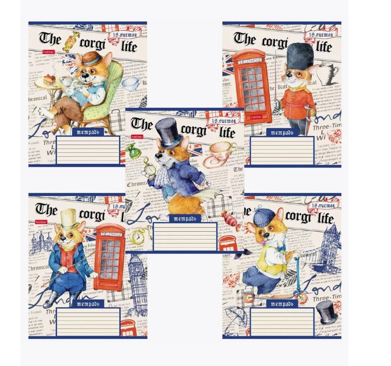 Тетрадь 18л. HATBER клетка, обложка картон, Корги_LIFE (5 видов в спайке), 18Т5В1 106544