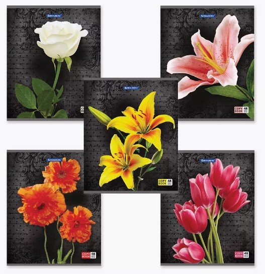 Тетрадь А5 48л. BRAUBERG скоба, клетка, блестки, ЦВЕТЫ, 401839