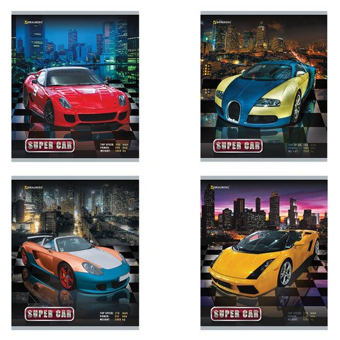 Тетрадь А5 48л. BRAUBERG скоба, клетка, обложка картон, МАШИНЫ, 403038