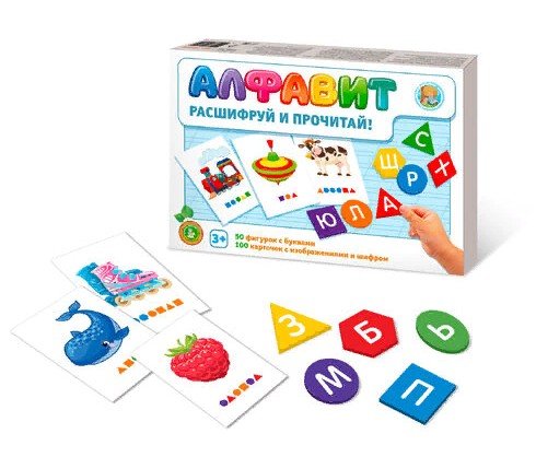 Игра настольная "Алфавит. Расшифруй и прочитай" (деревянные буквы-фишки) 04508