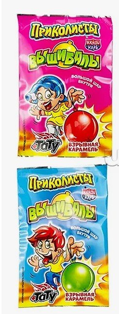 Взрывная карамель с игрушкой и татуировкой "Приколисты. Вышибалы" 1г (30шт) 4657800424749
