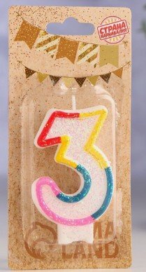 Свеча для торта «Цифра 3», 7 см 403533