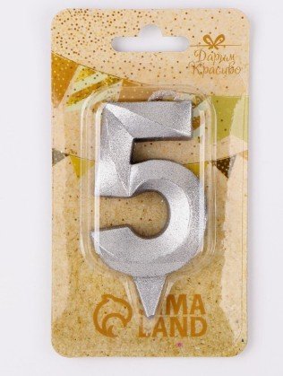 Свеча в торт «Цифра 5», серебряная, 6.5 см 5928499