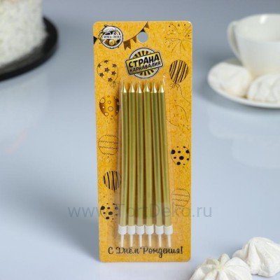 Свечи в торт «Ройс», 6 шт., высокие, 13 см, золотой металлик 4710820